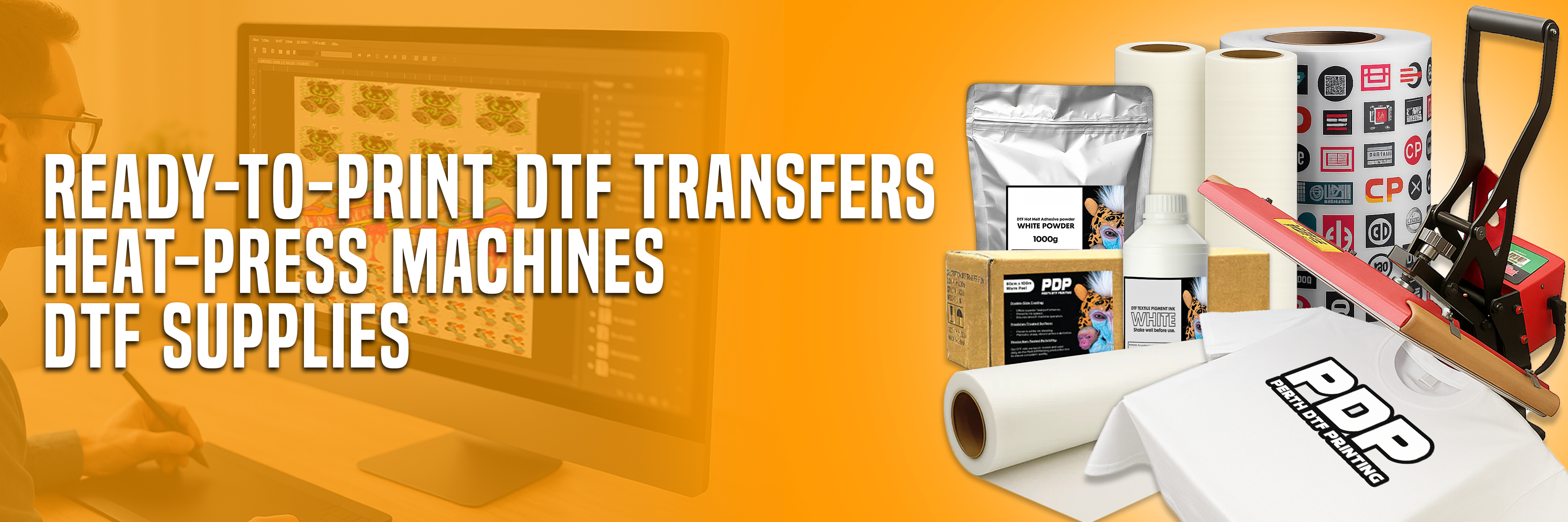 We are based in Perth and supply Ready-to-print DTF Transfers, Heat-Press Machines & DTF Supplies.